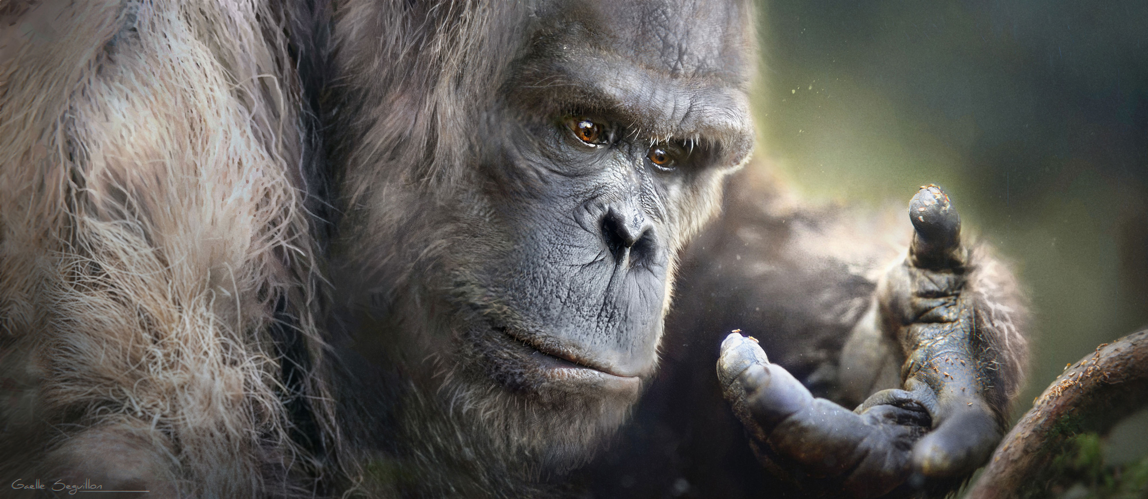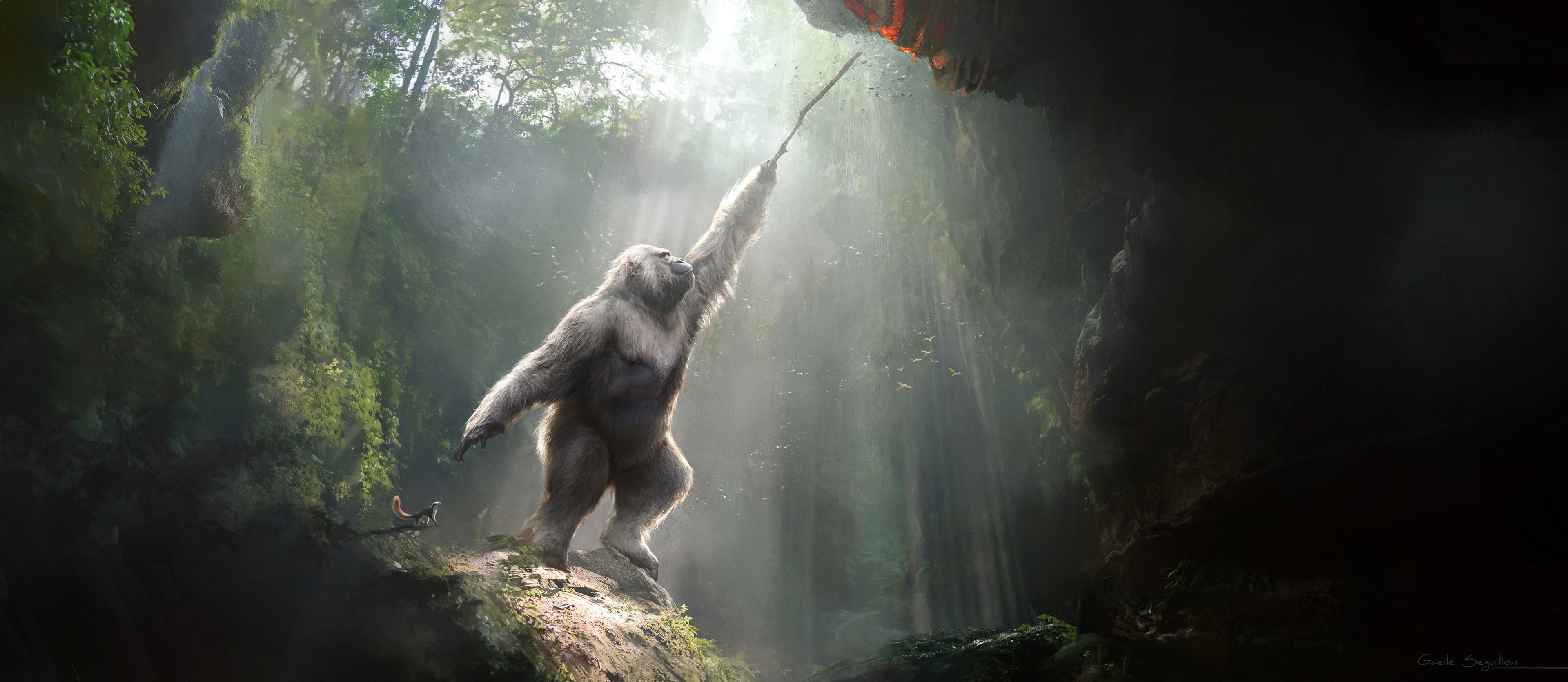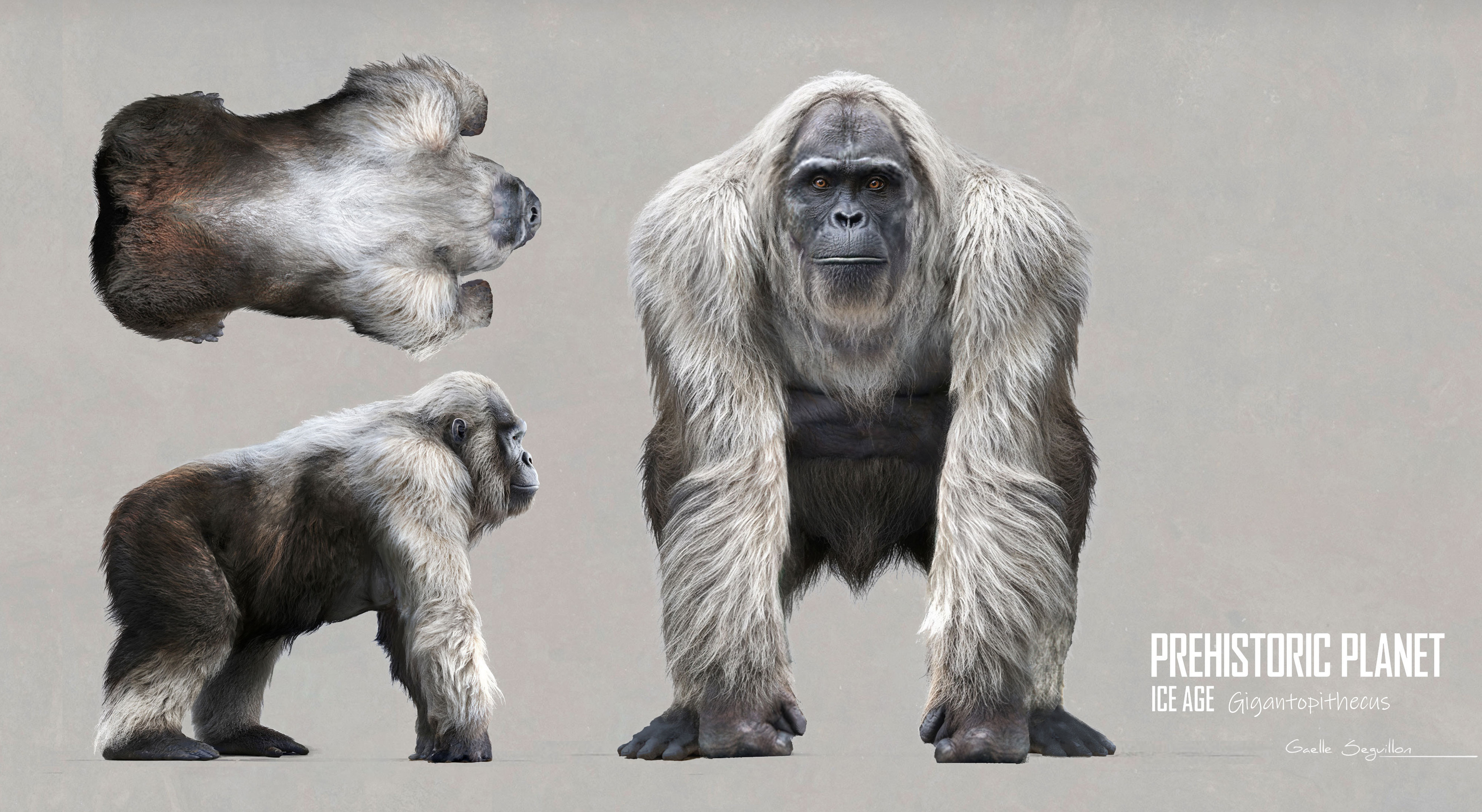 Concept art and creature design done for the AppleTV/BBC series PrehistoricPlanet : Ice Age. This was our take on Gigantopithecus. Trying to lean away from obvious “giant Orangutan” look. The fur is based on Orangutans fur that I discoloured to give it a different twist.
